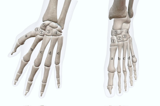 上のイラストは、左の手と足です。